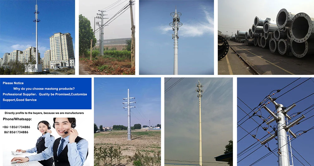 Som professionelle producenter vil Mao Tong gerne give dig 10KV Single Pipe Transmission Monopole Electric Tower. Og vi vil tilbyde dig den bedste eftersalgsservice og rettidig levering. Enkelt tårn, refererer til et enkelt stålrør sammensat af fritstående tårnhøje struktur til trådløs kommunikation, dens hoveddel er cirkulært eller polygonalt svejset stålrør, omtalt som et enkelt tårn. Enkeltrørs tårnkroppsmateriale Q345B, andre hjælpematerialer Q235B, tårnkroppen er ren stålstruktur, ingen forskønnelse og camouflagemodellering. Den almindelige tårnform er plug-in type, ekstern klatrebeslag type, intern/ekstern flange type og så videre
