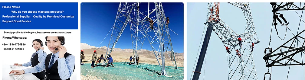 Mao Tong er en professionel leder Kina 500KV vinkel stål transmission elektrisk distribution Tower producenter med høj kvalitet og rimelig pris. Vinkelståltårn, firkantet struktur krafttårn, bruger Q345B høj kvalitet ligesom hovedmaterialet i tårnkroppen, stålkonstruktion, lille deformation, Vinkelstål splejsningsforbindelse, dele letvægts, kan være fuld manuel håndtering og installation, lave projektomkostninger, tårnkroppen kan udstyres med 6 lag platform, hvert lag af platform kan hænges 6 antenner.